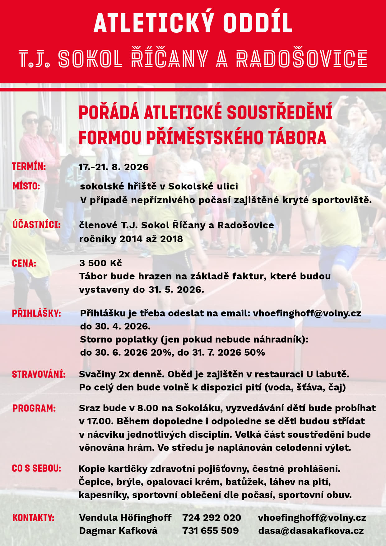 Atletické soustředění (ročníky 2013-2018), termín 25.-29. 8. 2025 (Sokolák)