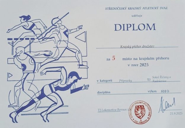 Třetí neděle v září tradičně patří finále přeboru přípravek. Do Berouna za nás vyrazila bojovat desítka finalistů, nominovaná z účastníků 4. kola. Naše skupina zahájila dálkou, následoval sprint na 50 m a hod raketkou. Důkazem skvělé formy všech zúčastněných je fakt, že co disciplína, to osobní rekord. (U dálky měřené z místa odrazu musíte na kartách atleta trošku heldat, neb označení této disciplíny se liší pořadatel od pořadatele.)