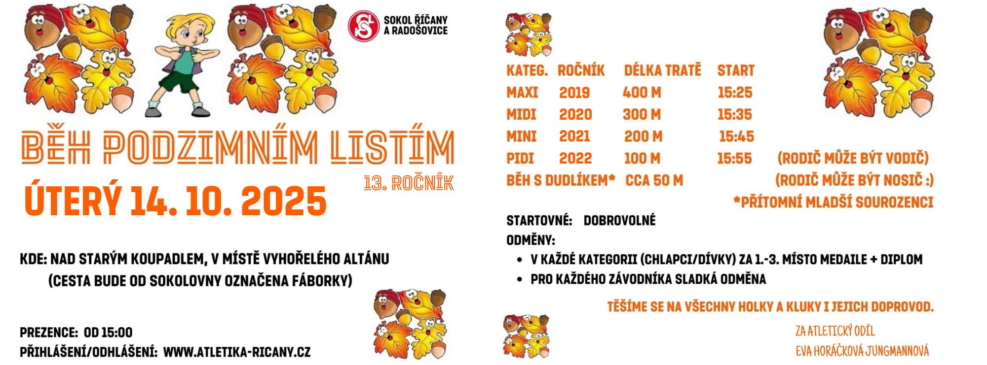V neděli 12. 10. 2025 proběhl již 43. ročník. Mezi 296 závodníky mnoha věkových kategorií bylo 83 členů naší jednoty. Vítězům blahopřejeme, všem děkujeme za reprezentaci a Milošovi za další krásné závody.